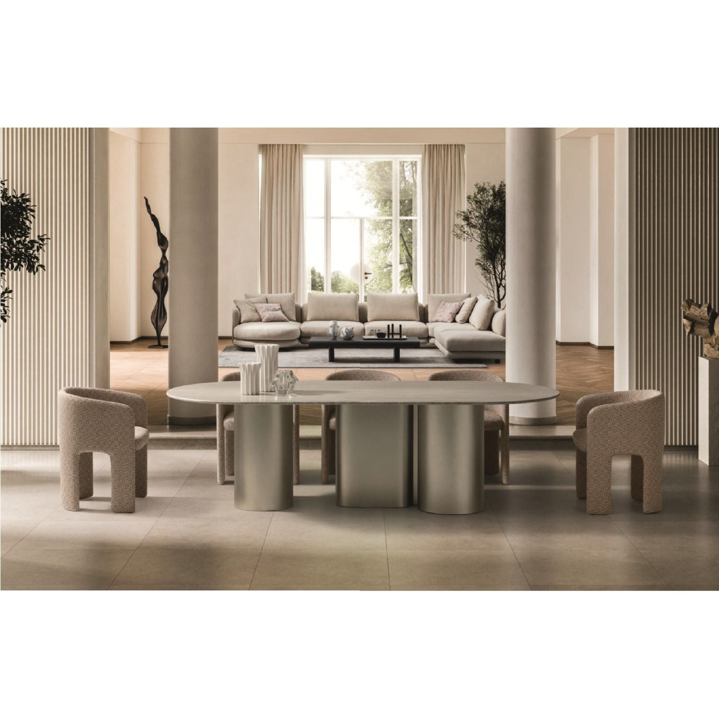 Inspired by the architectural rhythm of pillars, arches and passageways, the Arcade Dining Table transforms structural elements into sculptural supports. The modular base system, rooted in this timeless vocabulary, adapts seamlessly to a variety of top shapes—each combination creating an elegant statement of form and material. Available with glass, marble or wood tops, Arcade brings refined Italian design and enduring presence to any modern dining space.