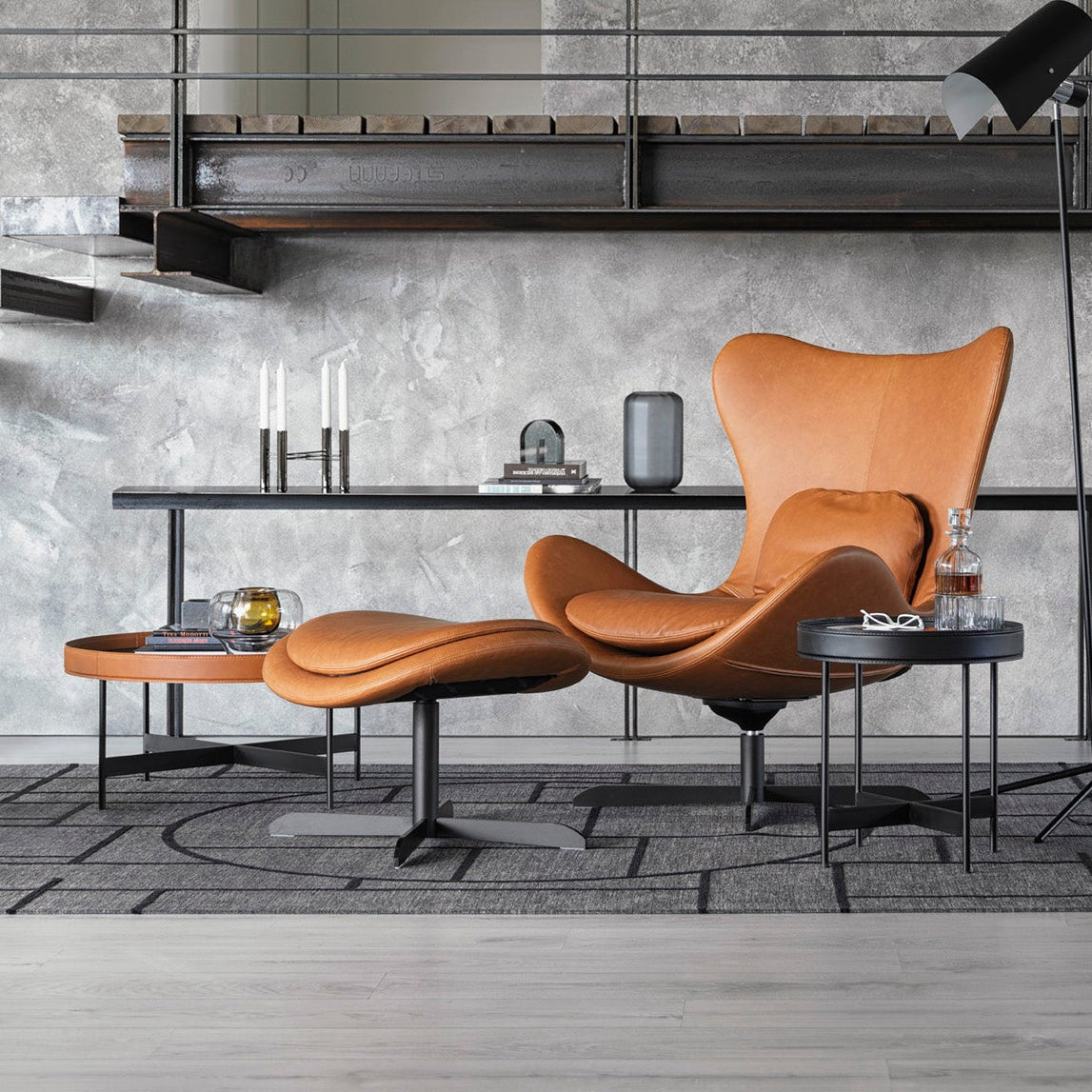The Arena coffee table blends sculptural metalwork with refined detail and elevated materials. Its tubular metal frame supports a round wooden top edged with cushioned regenerated leather, creating an elegant “arena” that wraps gently around the surface and offers a sense of personal retreat. In a clever dual-function twist, the top also doubles as a removable tray — perfect for informal lounging or relaxed entertaining. Arena brings designer poise and functional versatility to modern living spaces.