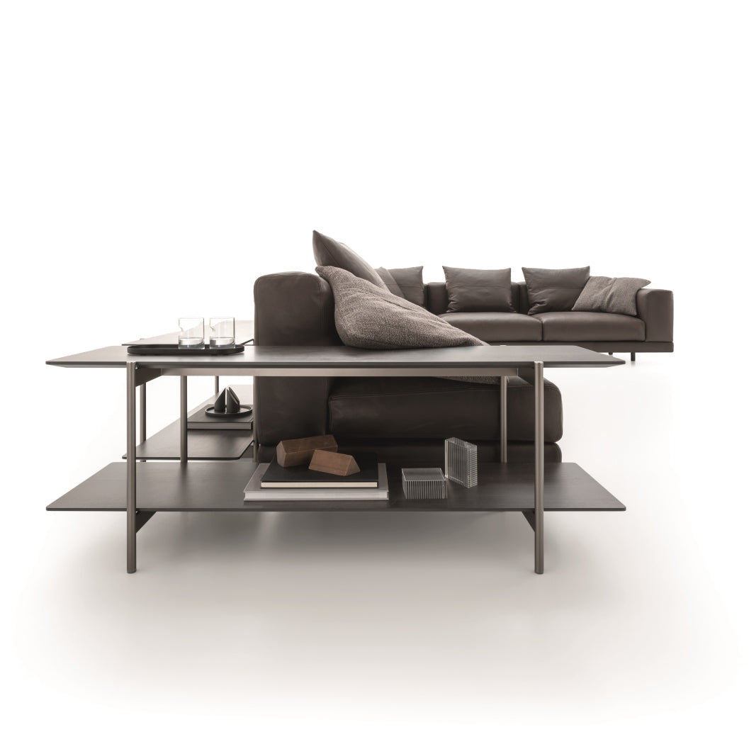 Available with a metal frame in selected finishes, and a top in either wood veneer or marble.