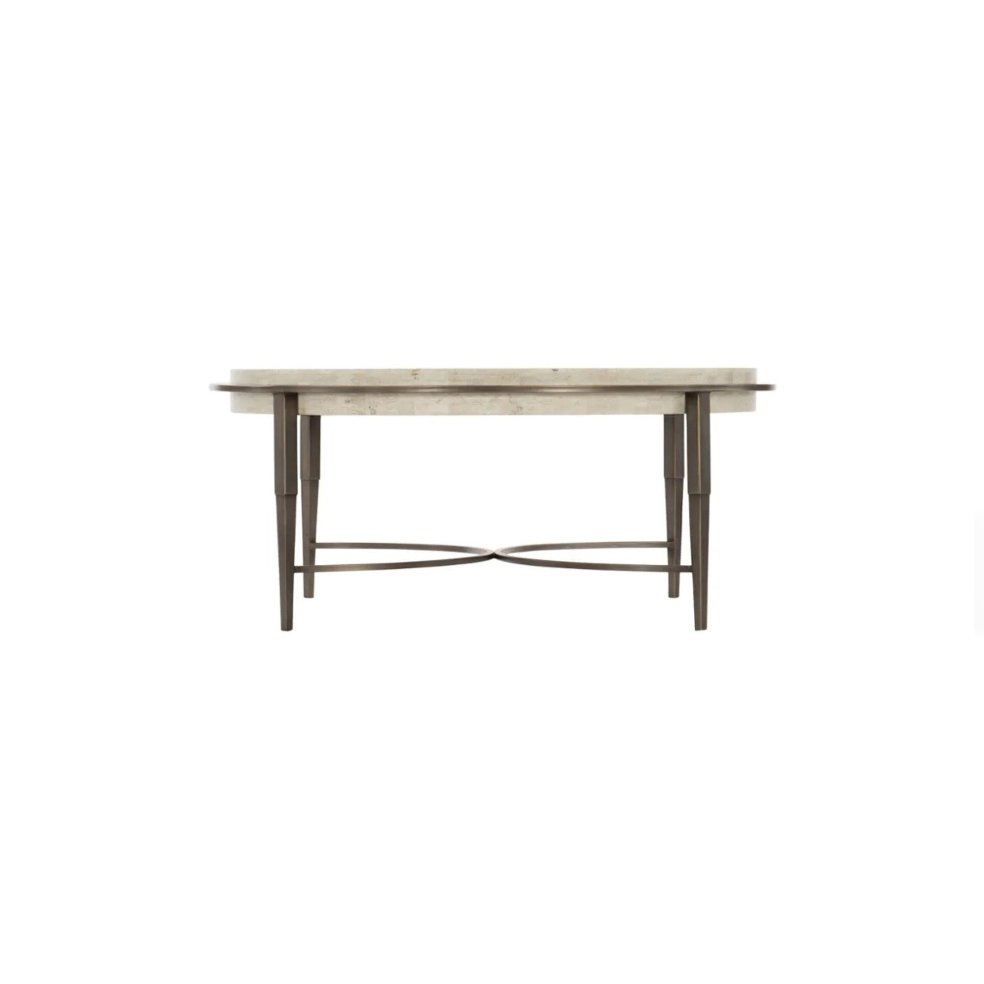 The Barclay Round Coffee Table brings timeless elegance to modern interiors with a refined combination of materials. Its honed white travertine stone top sits flush within a plated steel frame finished in antique pewter, creating a rich balance of textures and tones. Perfectly proportioned for contemporary living areas or formal lounge spaces, Barclay blends subtle luxury with functional presence.