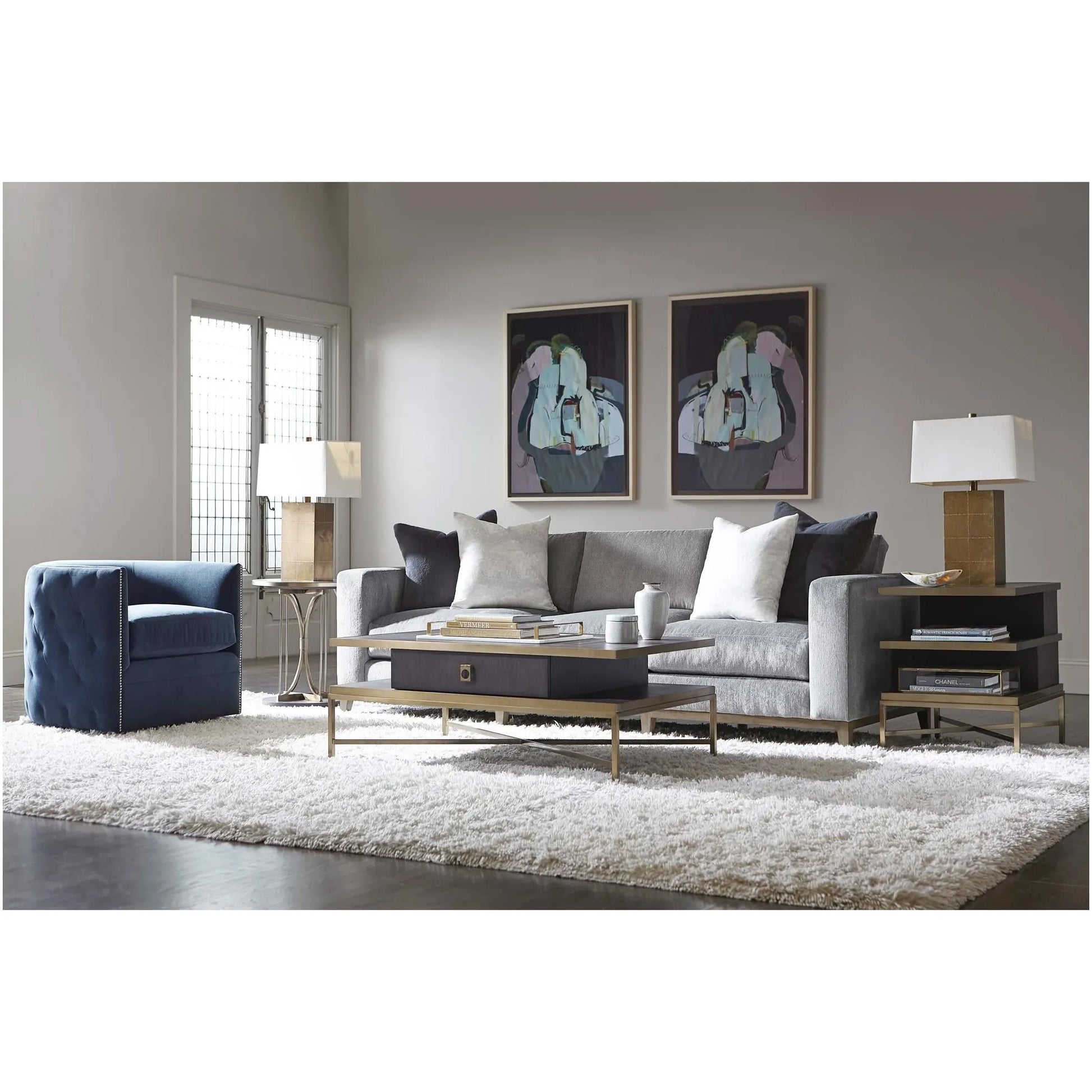 The Beaumont Side Table embodies timeless sophistication with its striking contrast of refined materials. A warm brass-finished frame supports charcoal quartered oak veneers on both the top and base, delivering rich texture and modern elegance in equal measure. Ideal as an accent beside seating or as a refined addition to any living space.