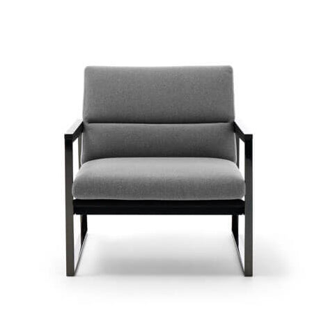 With its sleek metal frame in a black nickel finish and warm wooden armrests, the Daytona Armchair brings confident character to refined spaces. Upholstered in leather or fabric and available in all-leather or mixed leather and fabric versions, it blends comfort with modern luxury to enhance living rooms or upscale receptions.