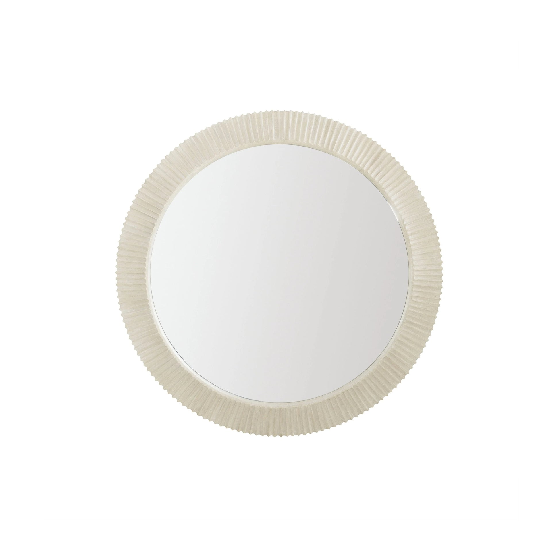 The East Hampton Round Mirror fuses coastal ease with refined modernity. Crafted from quarter-sawn ash in a cerused-linen finish, it features a cast frame with a subtly concave, reeded profile that adds gentle texture and depth. Non-bevelled mirrored glass ensures a clean, contemporary look that suits living rooms, entryways or sleeper suites.