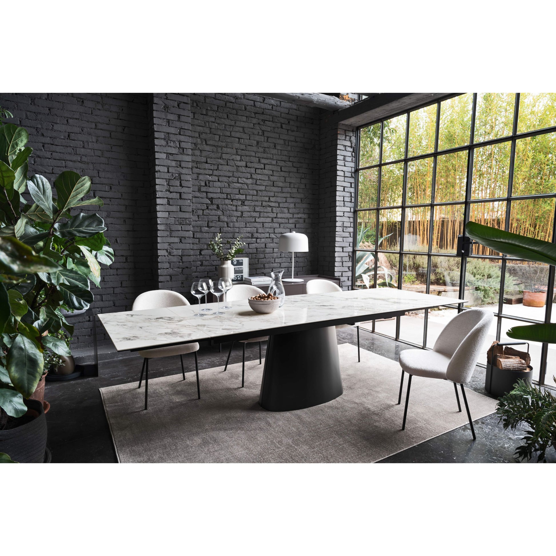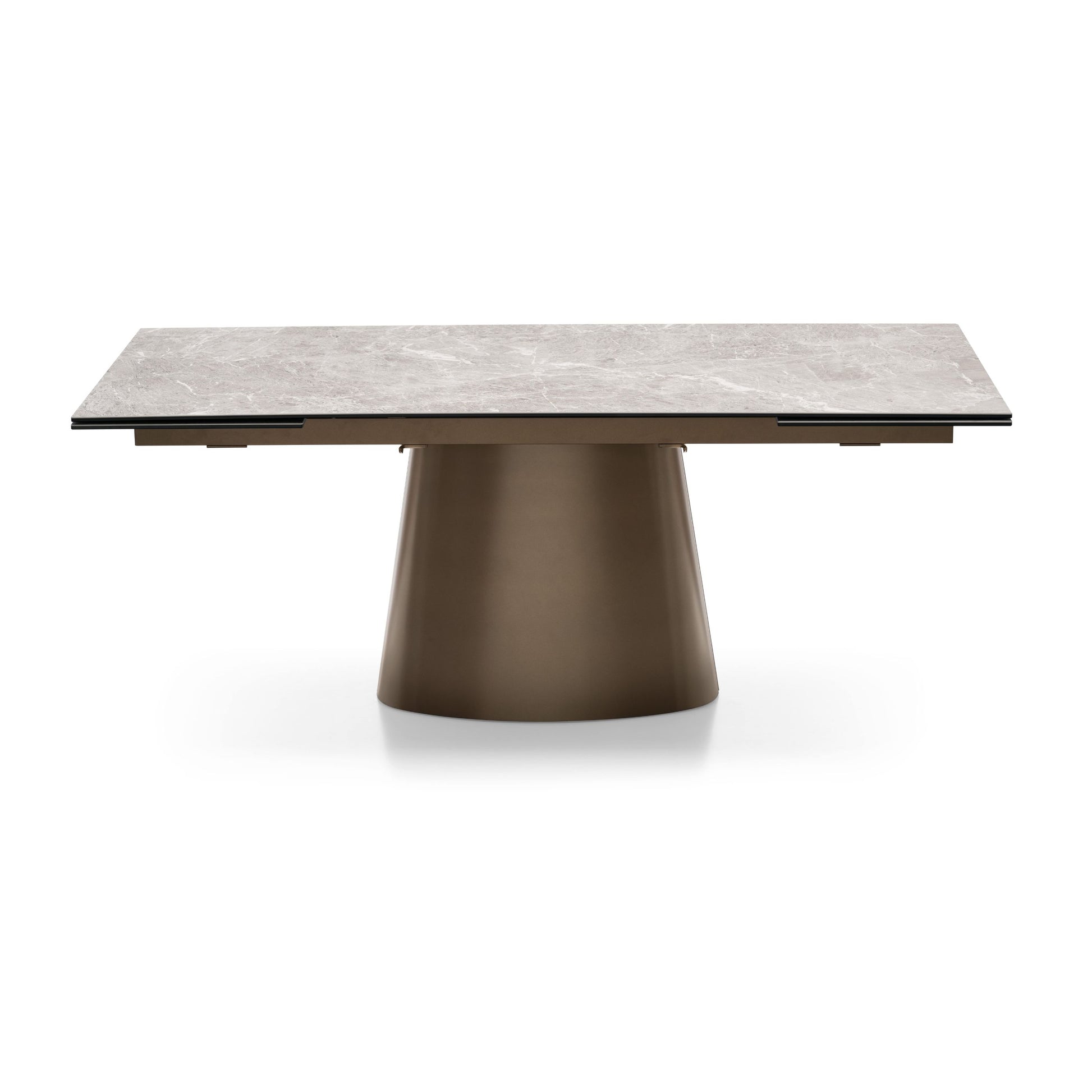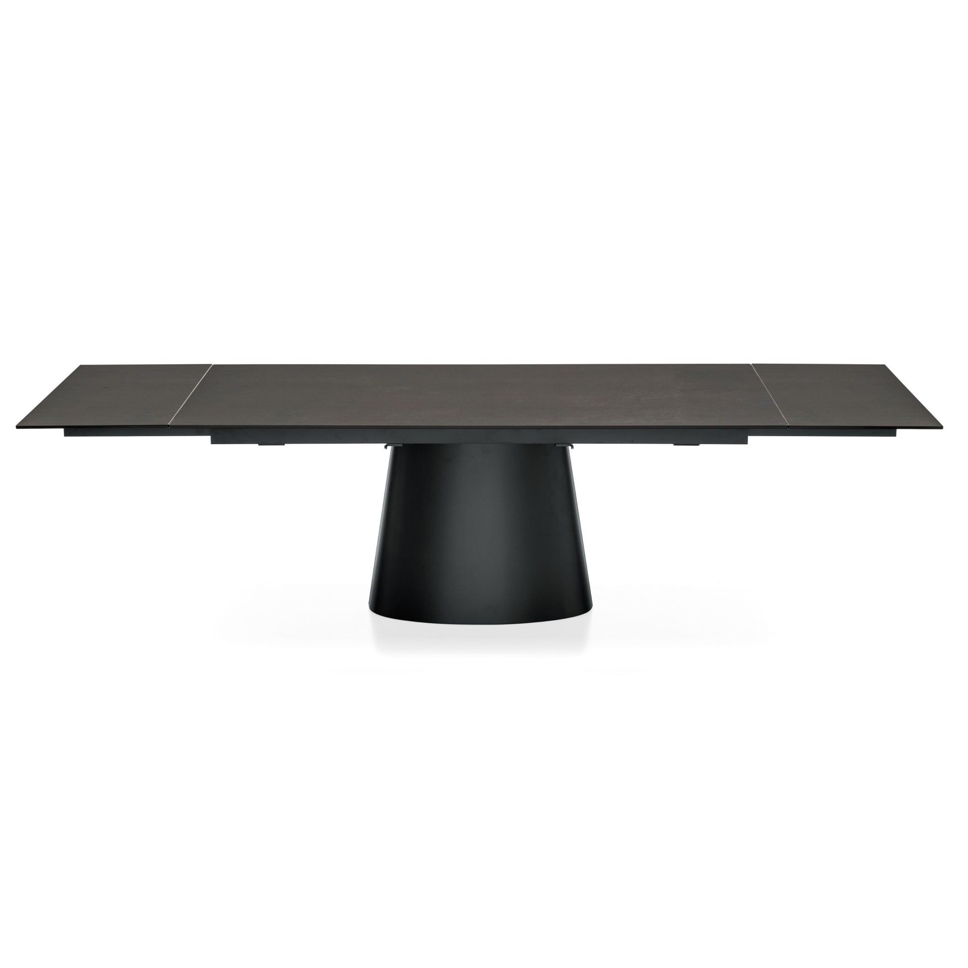 The Ellisse Extension Dining Table embodies sculptural elegance and versatility. Its refined ceramic top rests on a monolithic base crafted from gracefully curved, coated sheet metal, creating a bold architectural presence. Available in rectangular or barrel shapes, the table extends smoothly with concealed side leaves to accommodate extra guests when needed. A perfect blend of form and function, Ellisse brings contemporary Italian design and effortless sophistication to the modern dining space.
