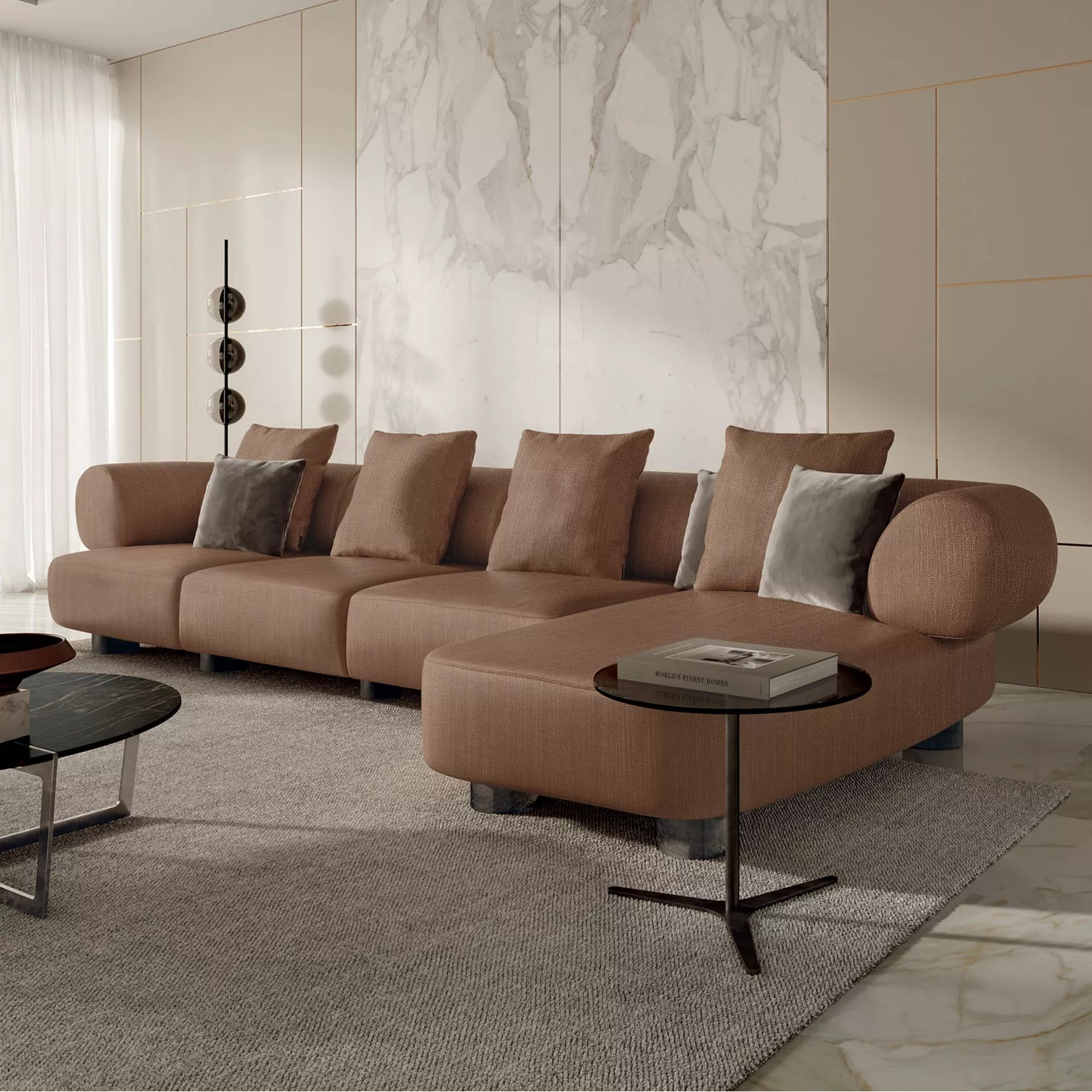 The Franz Sofa embodies generous volume and sculptural elegance, with its curvy, oversize silhouette and enveloping rounded back that gently wraps the thick, cushioned seating. Rich in comfort and distinctive in style, it's crafted to enrich living spaces with presence and personality. Its refined module options and colour combinations make it a standout in modern interiors.