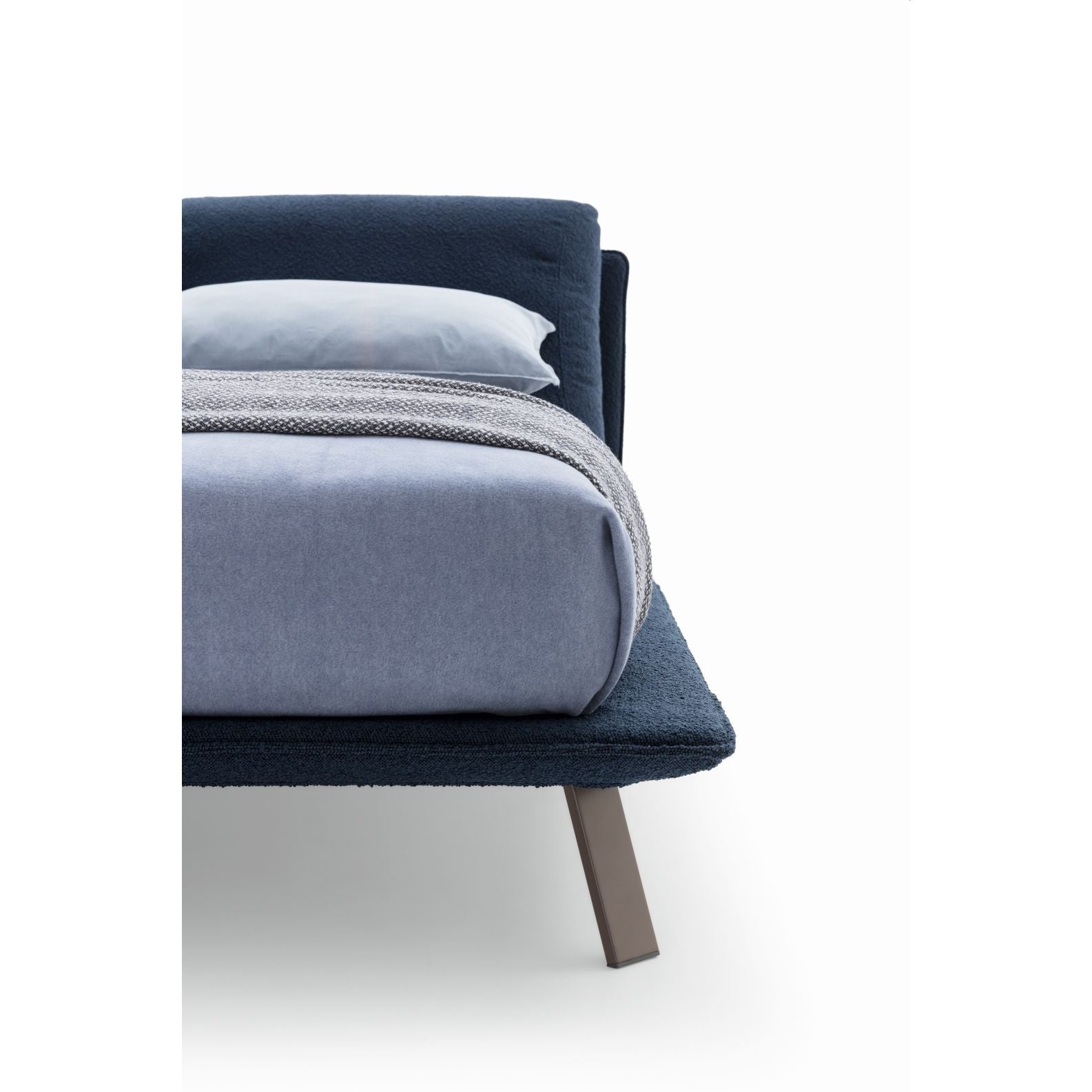 The Kanaha Bed showcases sleek, minimalist elegance rooted in Italian design. A slim, fully upholstered frame appears to hover above the floor, supported by delicate metal feet that lend visual lightness and stability. The result is a bed whose strength lies not in bulk, but in its refined minimal profile and high-quality materials. With fully removable fabric or leather covers, Kanaha combines practicality with timeless style.