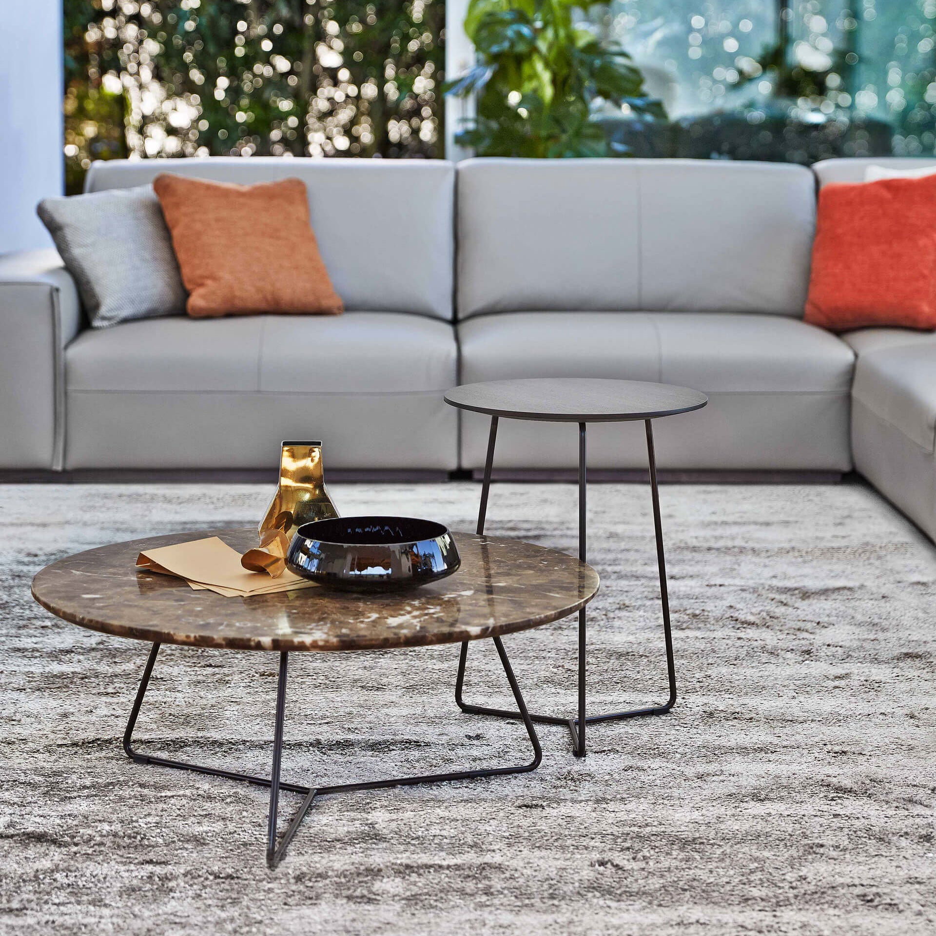 The Kevin Side Table delivers understated elegance with clean, contemporary lines. Its circular top rests on a slender painted-metal frame, creating an architectural silhouette that integrates seamlessly into both minimalist and layered interiors. Crafted in Italy, the piece allows for high versatility thanks to its choice of premium surface materials.