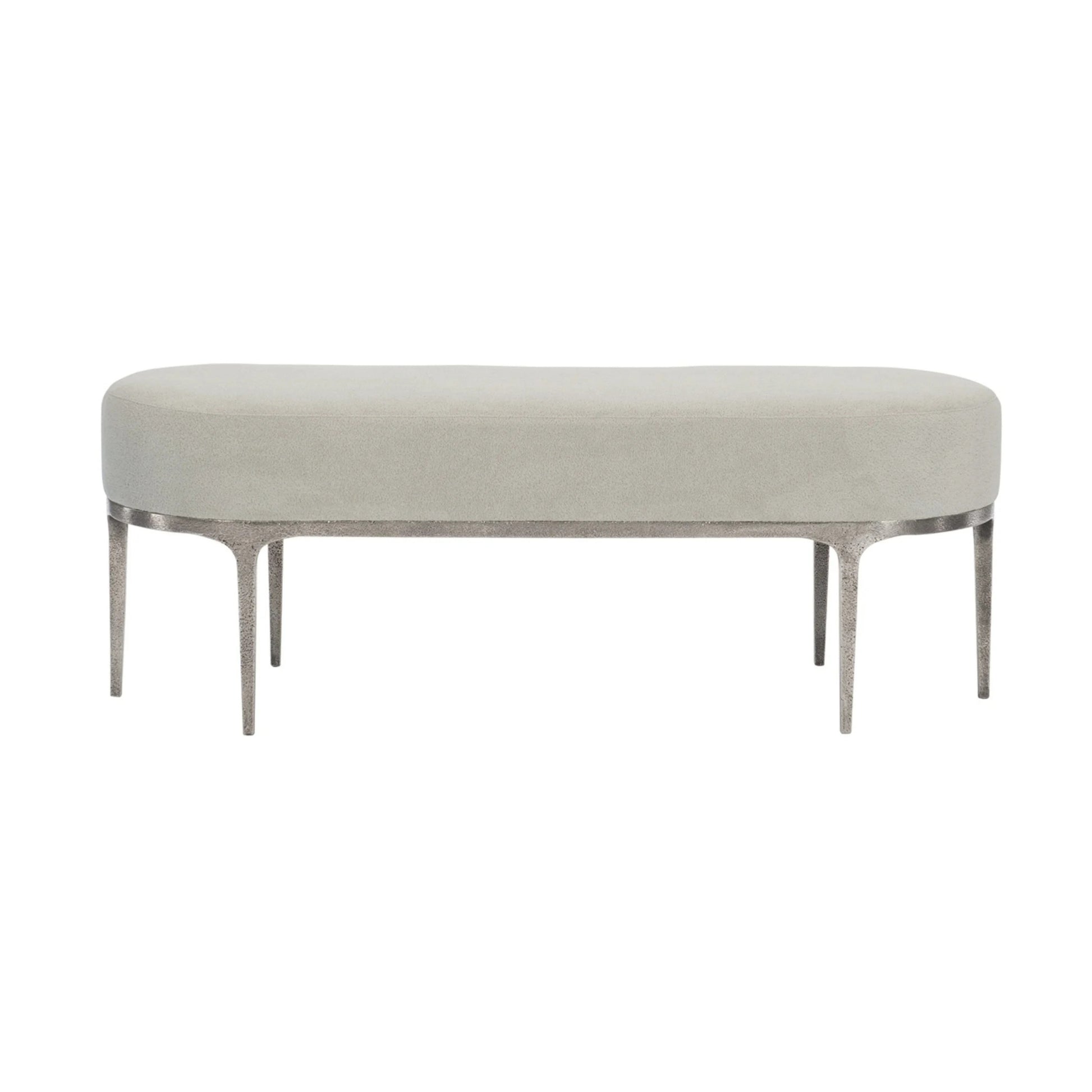 The Linea Bench Seat showcases a quiet yet bold aesthetic, with a smooth, upholstered seat free from welts or nail-heads resting atop a cast aluminium frame in Textured Graphite. Its refined lines and elevated material contrast make it ideal for hallways, entryways or as a chic accent in living and bedroom spaces.