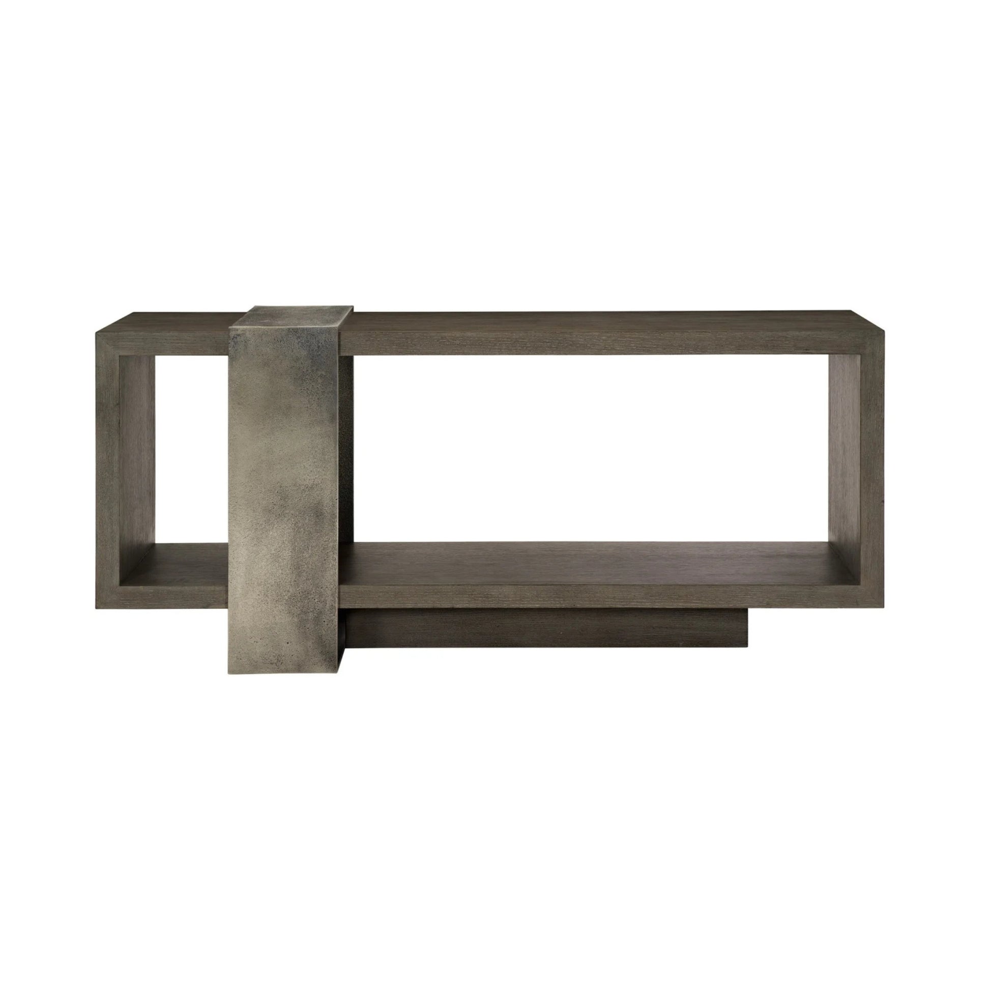 The Linea Console Table brings together a rugged-modern aesthetic and luxurious finishes in one statement-making piece. Featuring an open case design cleverly wrapped in a cast aluminum band that flows across the top and down the front and back, it blends tactile metal texture with natural wood veneer for a bold entry or living space anchor. Crafted for impact and everyday use, the Linea Console Table strikes the balance between function and refined design.