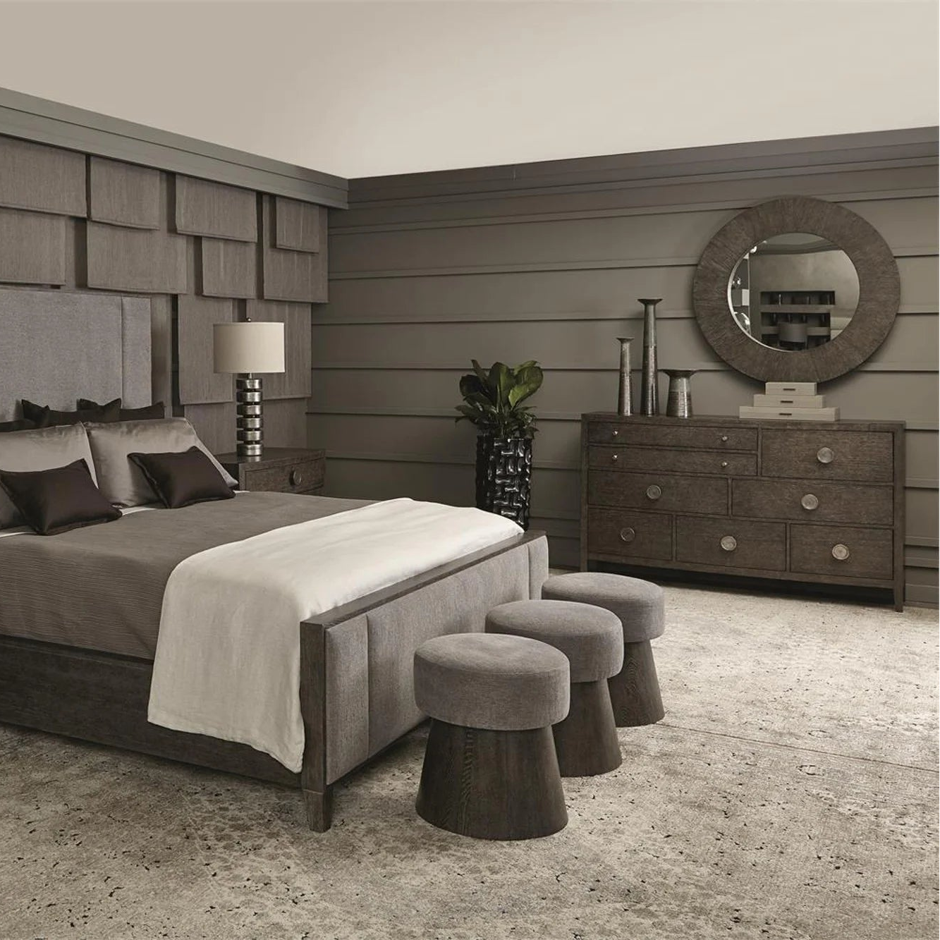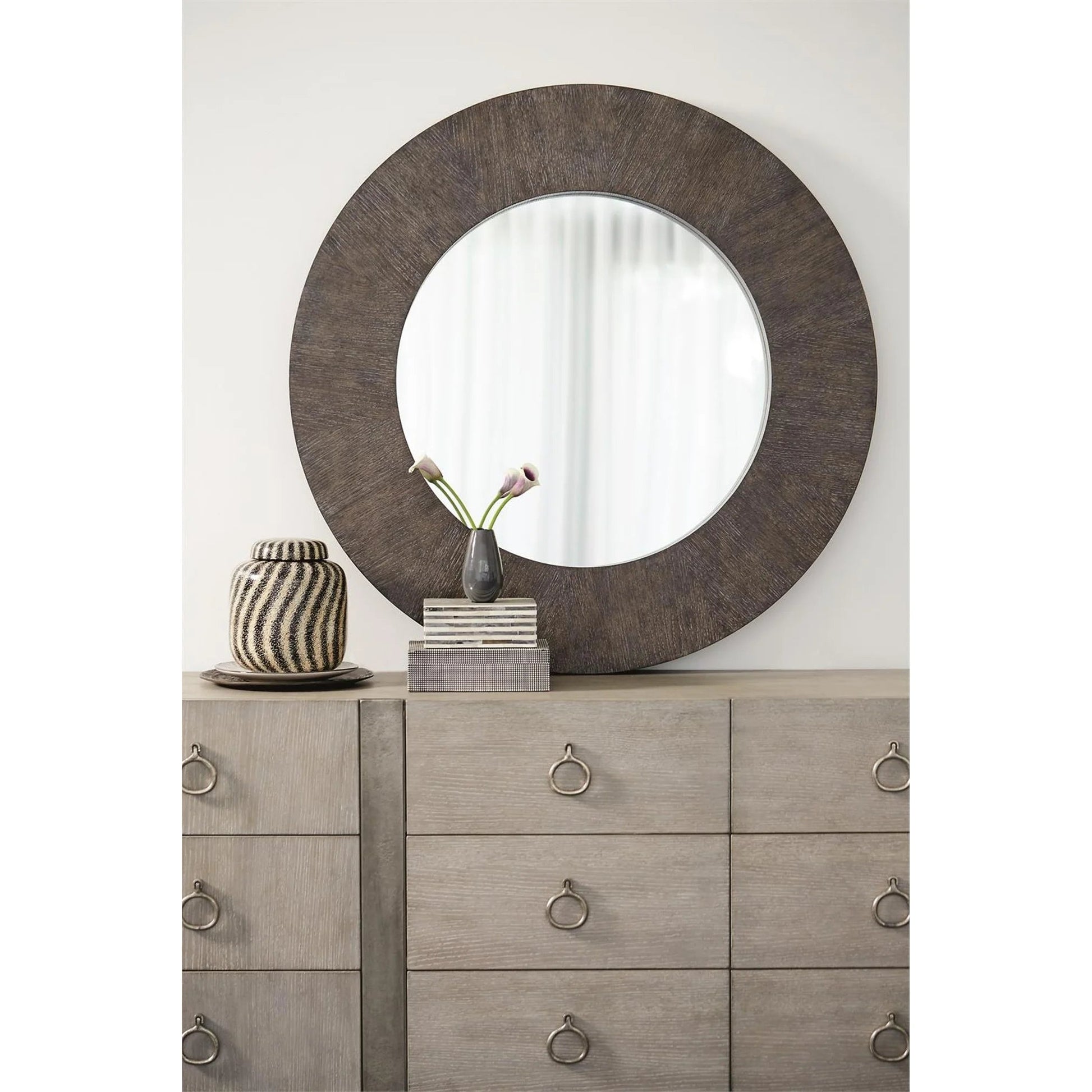 The Linea Round Mirror offers refined balance and textural richness in a perfect circular form. Its wire-brushed oak veneer frame in a Cerused Charcoal finish complements the smooth, non-bevelled mirrored glass inset, creating a standout piece that suits living rooms, entry halls or bedrooms.