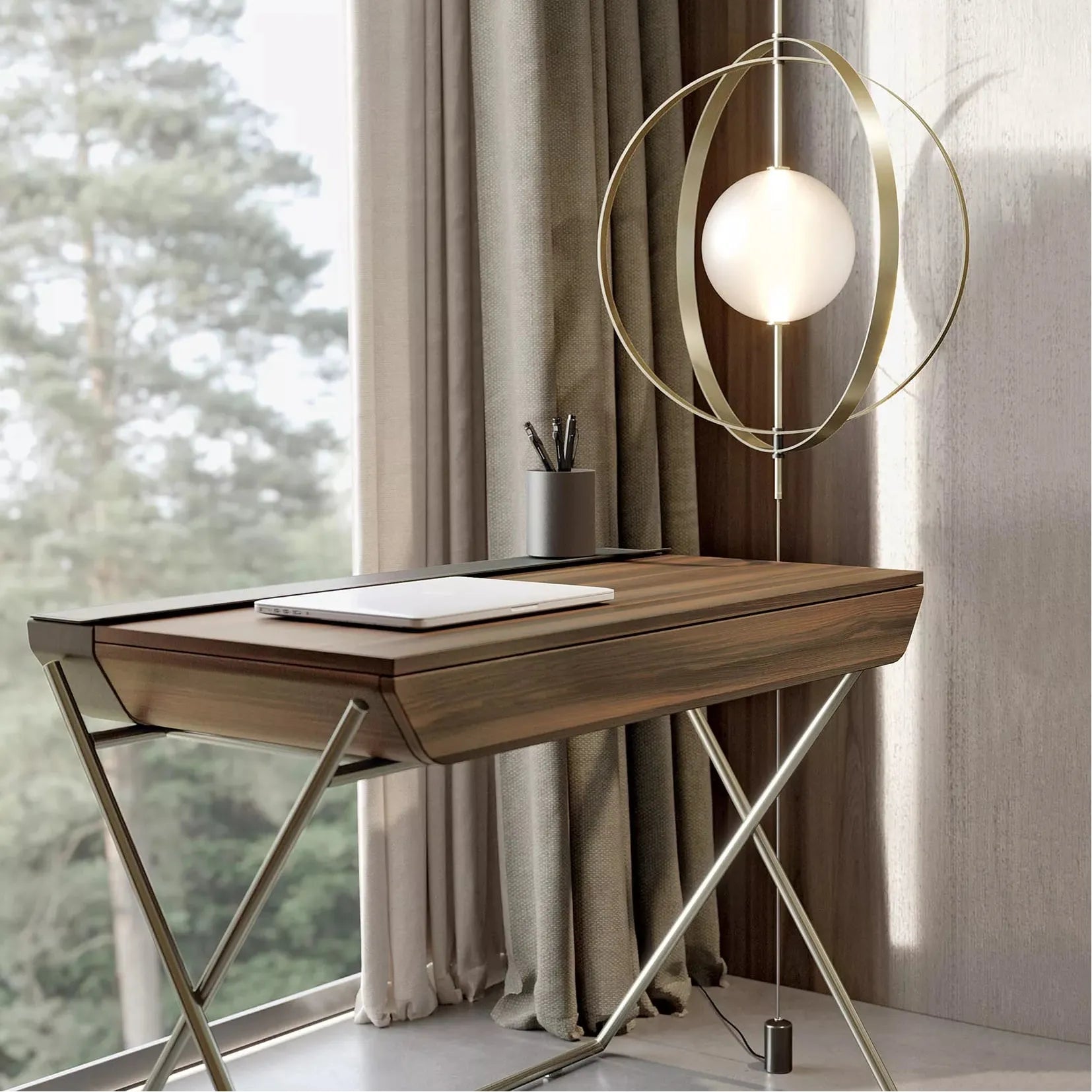 The Matisse Desk exemplifies modern functional elegance. With a lacquered metal frame and a refined wood-veneered top, it delivers a clean, architectural profile, while the integrated leather-wrapped storage compartment adds luxury and subtle texture. Designed to support work and living seamlessly, this desk transforms any space into an organised and stylish hub.