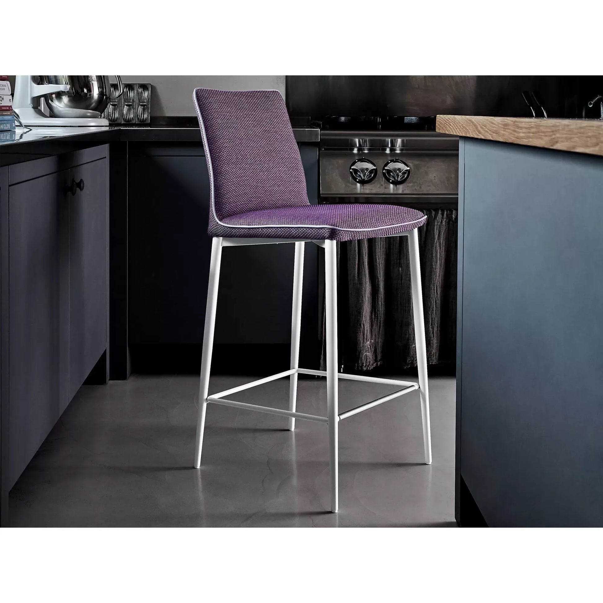 The Nata Stool blends elegant simplicity with designer flair. With a sleek lacquered metal frame supporting a fully upholstered one-piece shell and subtly detailed piping (match or contrast), it brings refined comfort to modern interiors. Designed for both low (counter) and tall (bar) heights, Nata is customisable in multiple upholstery and frame finishes — making it a sophisticated choice for kitchen islands, home bars or contemporary seating areas.