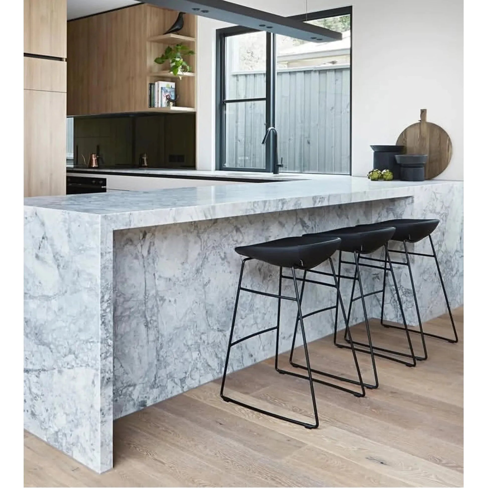 The Palm Stool brings modern Italian design to elevated seating with a soft, ergonomic foam-padded shell resting atop a sleek sled-base frame. Whether placed at a kitchen island or a bar, it offers exceptional comfort and elegant proportions. Available in a wide selection of upholstery finishes and frame colours, Palm is a versatile choice that combines refined styling with everyday usability.