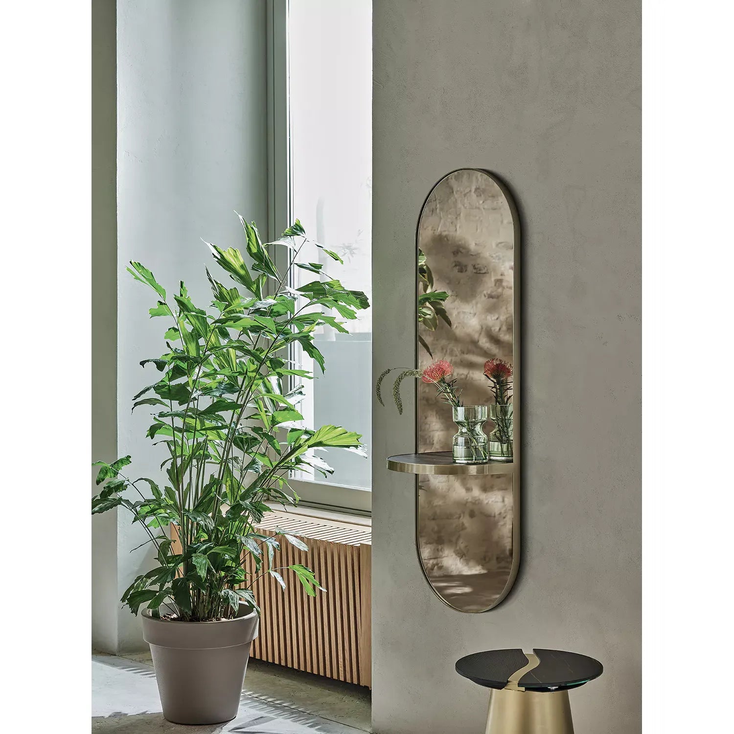 The Pill Mirror brings sculptural elegance to contemporary interiors, combining a soft elongated silhouette with a refined sense of proportion. Its distinctive oval shape is paired with a built-in shelf that allows small objects or décor pieces to be displayed, adding both functionality and visual depth. Ideal for entryways, bedrooms or living spaces, the Pill Oval Mirror delivers a clean, modern statement without overwhelming the room.