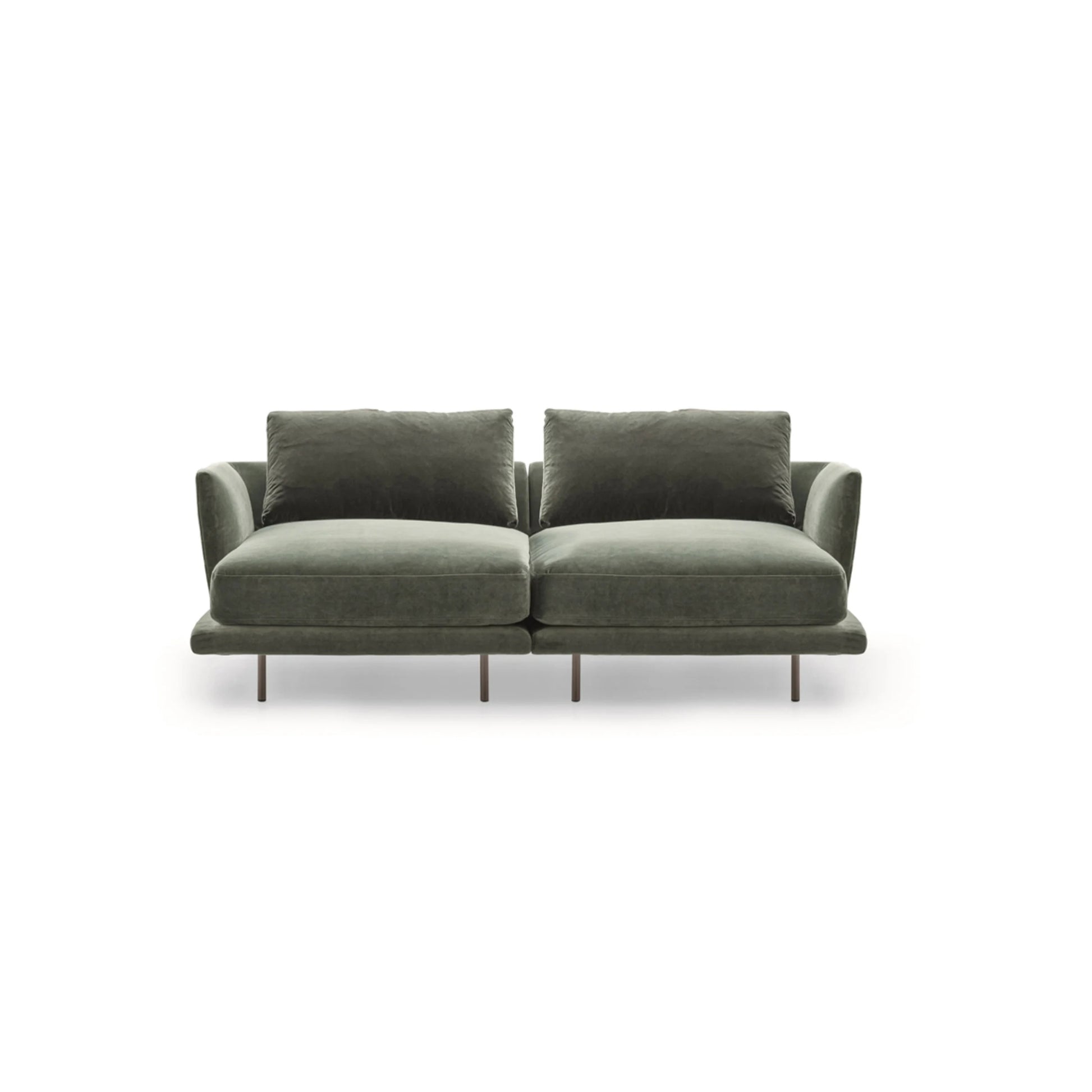 The Royal Sofa exemplifies sophisticated Italian design through its refined modular system, inspired by the world of fashion and interior decor. Available in two distinct versions — one with wide back cushions aligning with the seat, and another with an array of smaller cushions for a relaxed profile — it adapts gracefully to your personal style and space.