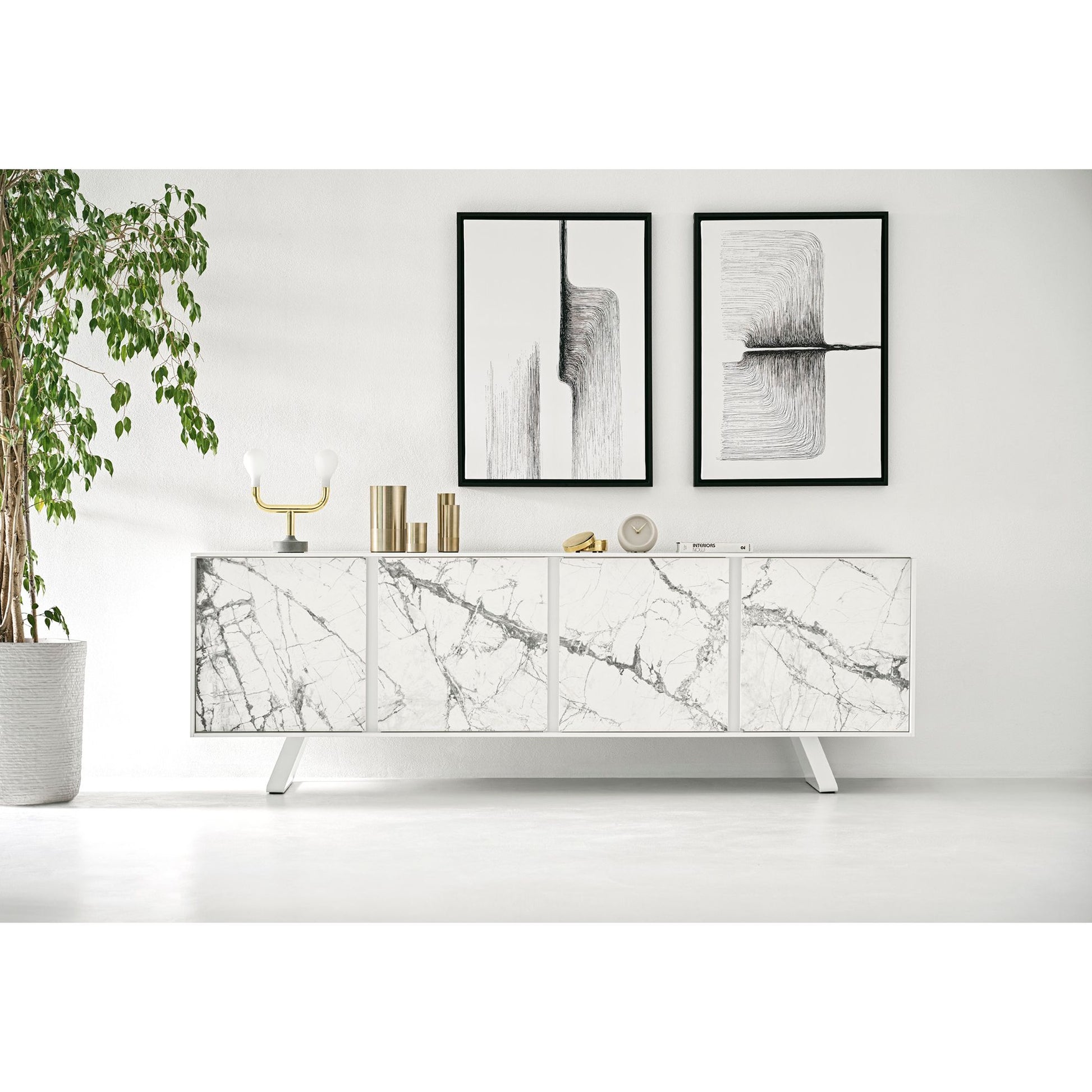 The Secret Buffet with ceramic doors combines refined design with striking material contrast. Its wooden body features clean, minimalist lines, while the marble-effect ceramic doors introduce an elegant textural depth. Designed for modern dining and living spaces, the Secret Buffet brings together functionality, sophistication, and timeless style.