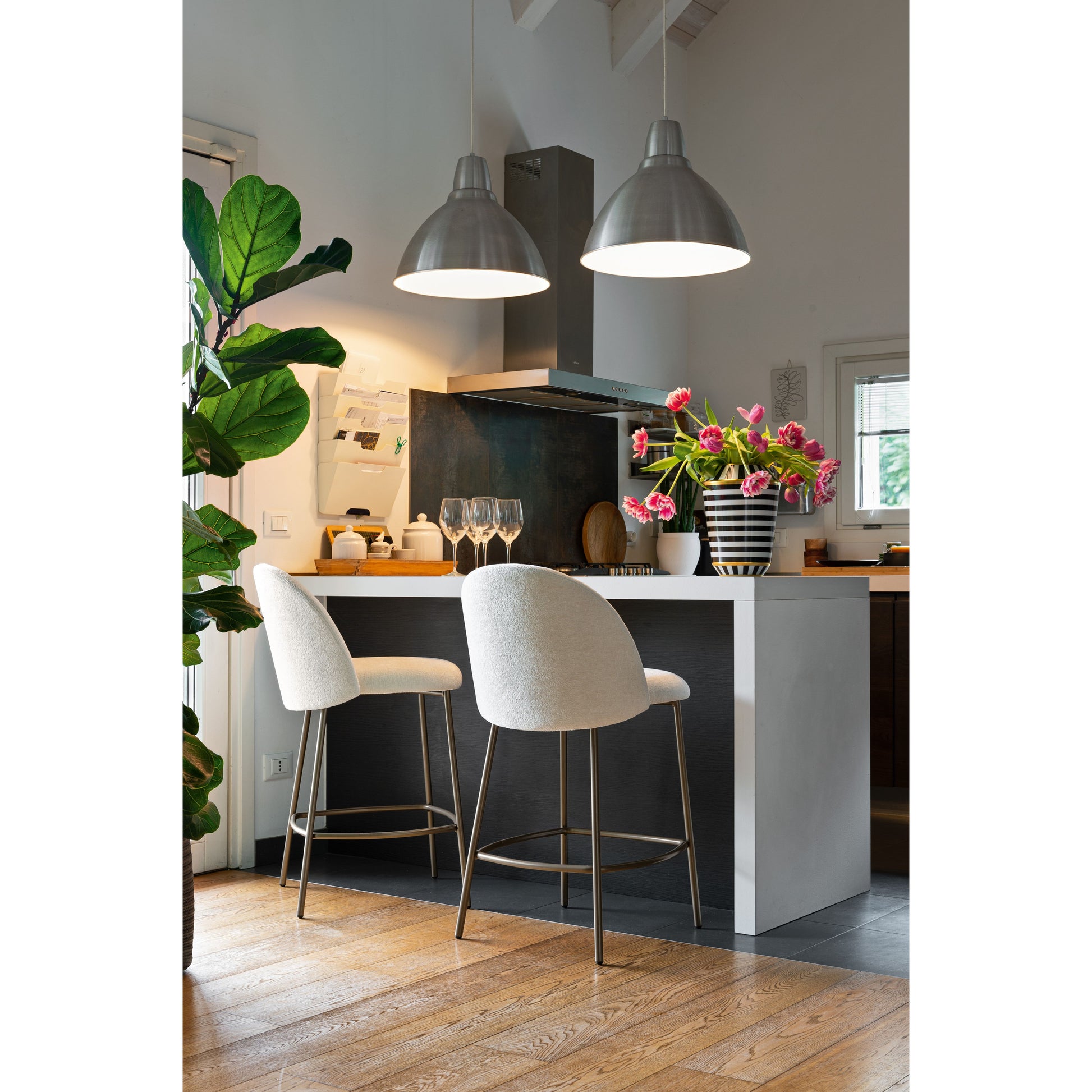 The Tuka Mid Stool blends mid-century charm with modern comfort. Its softly upholstered shell wraps the sitter without overwhelming the space, while a choice of timber or metal legs adds tailored versatility. Designed to adapt effortlessly across kitchen islands, bar counters and dining zones, it brings understated style and enduring comfort to contemporary interiors.